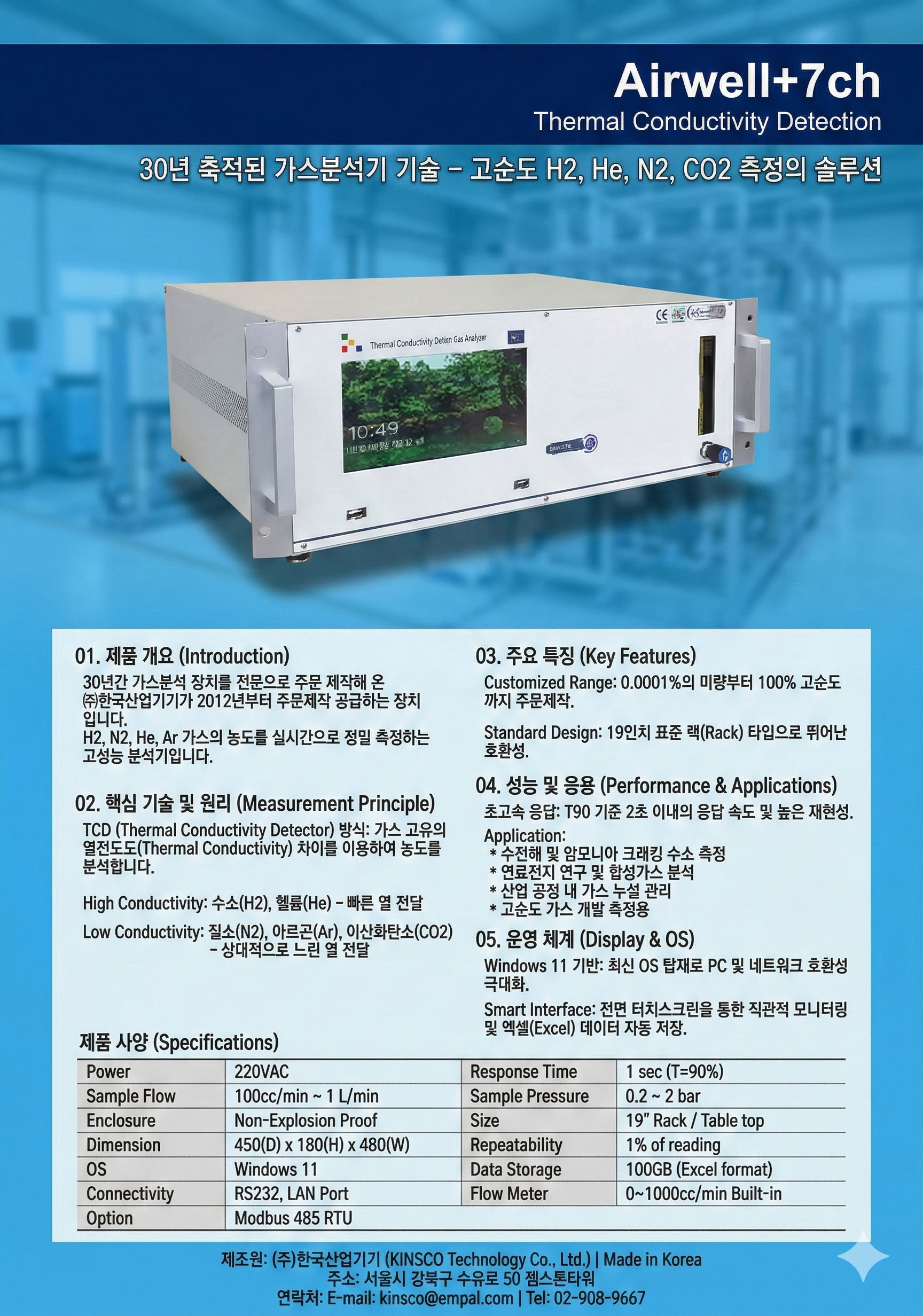 0~ 99.9995% H2 N2 He Gas 측정 장치 Airwell+7ch