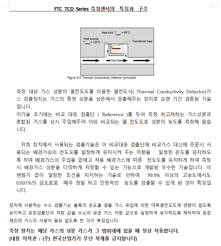 열전도식 고순도 수소가스 측정장치 모델 : 사용처 : 고순도(99.999 %) 수소 가스 농도 측정